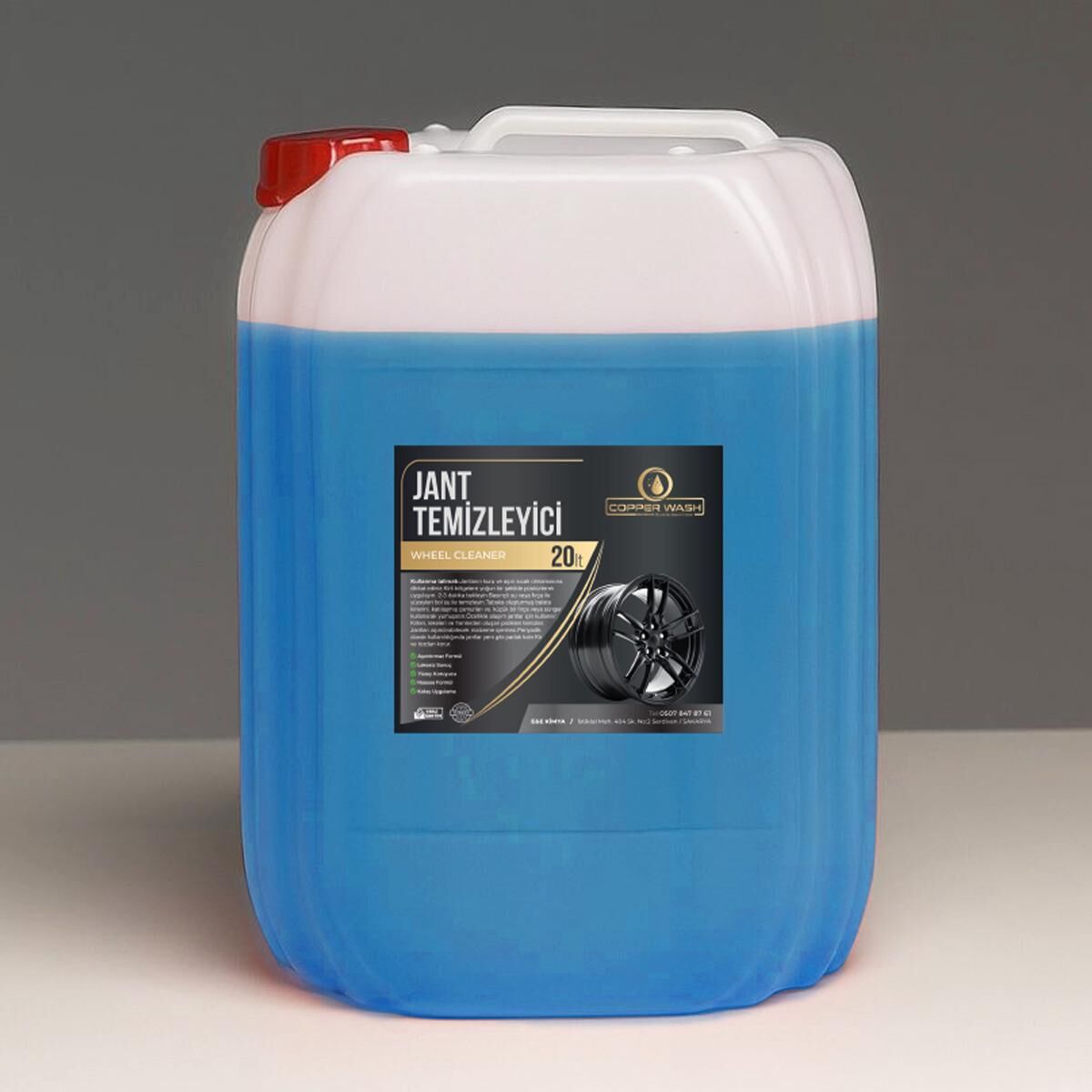 Jant Temizleyici 20 LT, araç jantlarında biriken fren tozu, yol kiri, yağ kalıntıları ve zorlu lekeleri kolayca çözen güçlü formüle sahip bir temizlik ürünüdür. Asidik veya asitsiz formül seçenekleriyle hem alüminyum hem de çelik jantlarda güvenle kullanılabilir. Jantların parlaklığını geri kazandırır ve yüzeye zarar vermeden derinlemesine temizlik sağlar.