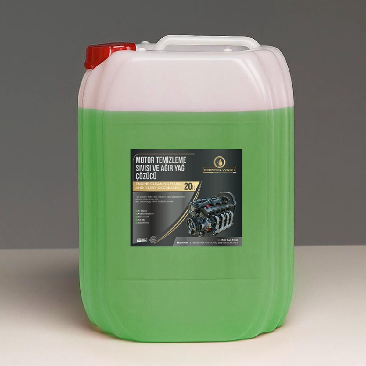 Motor Temizleme ve Ağır Yağ Çözücü 20 LT, araç motorları, sanayi makineleri ve ağır yağlı yüzeylerde biriken zorlu kirleri ve yağları kolayca temizlemek için geliştirilmiş profesyonel bir temizlik ürünüdür. Güçlü formülü sayesinde, en inatçı gres, yanmış yağ ve kir tabakalarını bile zahmetsizce söker ve yüzeyi ilk günkü temizliğine kavuşturur.